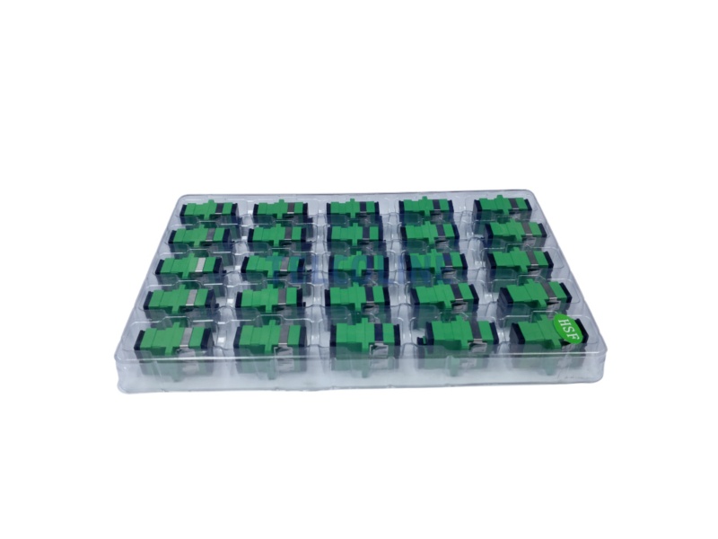 Adaptery światłowodowe to istotne komponenty sieci światłowodowych umożliwiające fizyczne połączenie włókien m.in. za pomocą patchordów i pigtaili z odpowiednimi złączami. Adaptery wykonane są w standardzie zapewniającym ich montaż w większości muf, przełącznic oraz gniazd abonenckich. Adaptery Gold class wyposażone są w ceramiczną ferulę gwarantującą bardzo niskie parametry tłumienia ,a także bardzo wysokie parametry transmisyjne i eksploatacyjne. Adaptery wyprodukowane zostały z tworzywa sztucznego w kolorze zielonym (APC), posiadają czarne zatyczki, oraz otwory do montażu w panelu za pomocą śrubek lub zatrzasków.