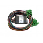 Splitter PLC ABS box z podziałem mocy optycznej 1:32. Włókna w powłoce typu patchcord o średnicy 2 mm (1 m długości) w 12 kolorach. Splitter zakończony złączami optycznymi SC/APC wykonany w klasie Gold