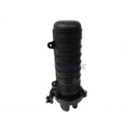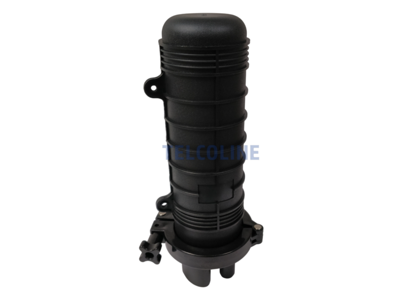 Mufa pionowa TELCOLINE S-M.024.3.1 to urządzenie zaprojektowane do ochrony spawów włókien światłowodowych przed oddziaływaniem warunków atmosferycznych oraz przed zagrożeniami mechanicznymi. Konstrukcja umożliwia montaż urządzenia w instalacjach napowietrznych, doziemnych i kanalizacyjnych. Mufa wyposażona została w 2 tacki (kasety) światłowodowe z możliwością umieszczenia do 24 spawów na każdej (podwójne ułożenie spawów). Wykonana została z polipropylenu (PP), który gwarantuje odporność na promieniowanie UV, niskie i wysokie temperatury oraz substancje występujące w kanalizacji teletechnicznej. Urządzenie po zamknięciu jest hermetyczne, stopień ochrony to IP68 (6 - Ochrona pyłoszczelna, 8 - ochrona przed skutkami ciągłego zanurzenia w wodzie). Mufa wyposażona jest w 3 okrągłe porty (średnica 18 mm) i jeden port owalny (50x25 mm).