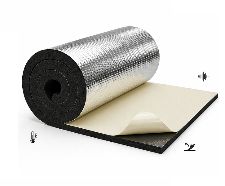 Mata kauczukowa samoprzylepna z folią aluminiową, grubość 25 mm – elastyczna izolacja termiczna i akustyczna, odporna na wilgoć i kondensację, stosowana do rur, kanałów wentylacyjnych oraz instalacji chłodniczych i grzewczych. Folia aluminiowa pełni funkcję bariery odbijającej ciepło, zwiększając efektywność izolacji.