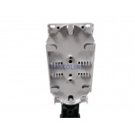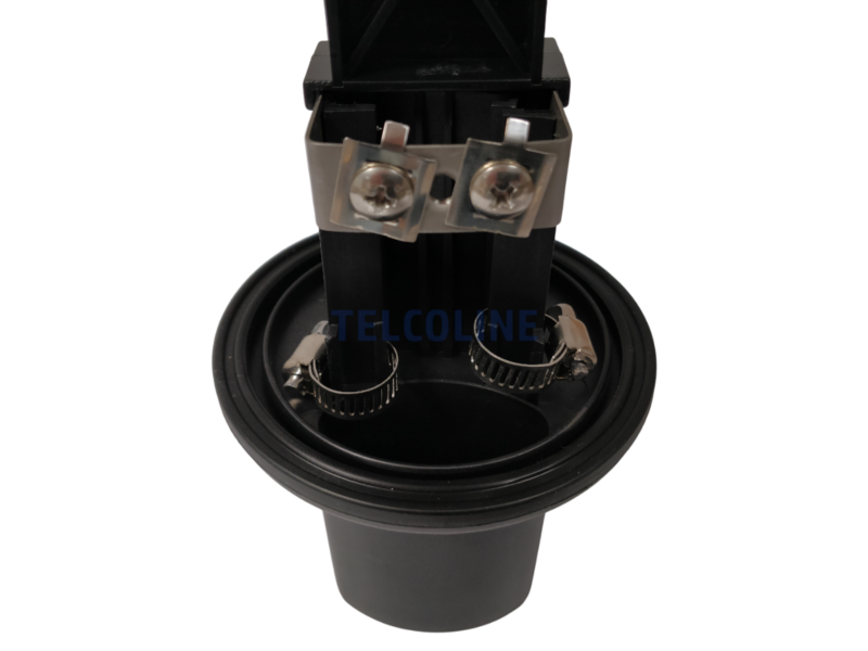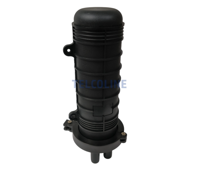 Mufa pionowa TELCOLINE S-M.024.2.1 to urządzenie zaprojektowane do ochrony spawów włókien światłowodowych przed oddziaływaniem warunków atmosferycznych oraz przed zagrożeniami mechanicznymi. Konstrukcja umożliwia montaż urządzenia w instalacjach napowietrznych, doziemnych i kanalizacyjnych. Mufa wyposażona została w 2 tacki (kasety) światłowodowe z możliwością umieszczenia do 12 spawów na każdej (podwójne ułożenie spawów). Wykonana została z polipropylenu (PP), który gwarantuje odporność na promieniowanie UV, niskie i wysokie temperatury oraz substancje występujące w kanalizacji teletechnicznej. Urządzenie po zamknięciu jest hermetyczne, stopień ochrony to IP68 (6 - Ochrona pyłoszczelna, 8 - ochrona przed skutkami ciągłego zanurzenia w wodzie). Mufa wyposażona jest w 2 okrągłe porty (średnica 18 mm) i jeden port owalny (50x25 mm).
