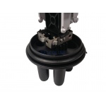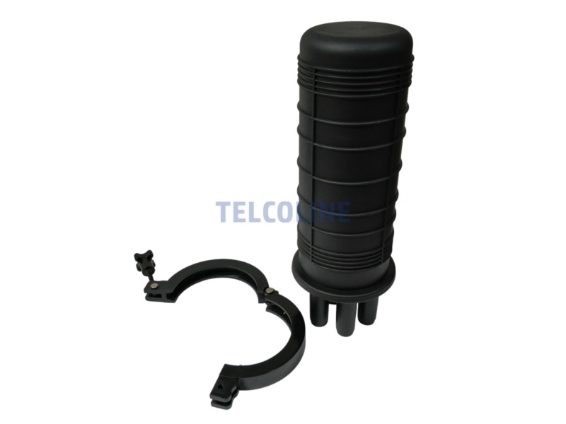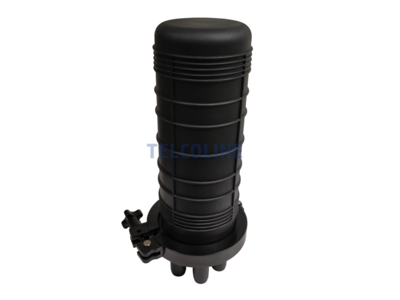 Mufa pionowa TELCOLINE S-M.024.3.1 to urządzenie zaprojektowane do ochrony spawów włókien światłowodowych przed oddziaływaniem warunków atmosferycznych oraz przed zagrożeniami mechanicznymi. Konstrukcja umożliwia montaż urządzenia w instalacjach napowietrznych, doziemnych i kanalizacyjnych. Mufa wyposażona została w 2 tacki (kasety) światłowodowe z możliwością umieszczenia do 24 spawów na każdej (podwójne ułożenie spawów). Wykonana została z polipropylenu (PP), który gwarantuje odporność na promieniowanie UV, niskie i wysokie temperatury oraz substancje występujące w kanalizacji teletechnicznej. Urządzenie po zamknięciu jest hermetyczne, stopień ochrony to IP68 (6 - Ochrona pyłoszczelna, 8 - ochrona przed skutkami ciągłego zanurzenia w wodzie). Mufa wyposażona jest w 3 okrągłe porty (średnica 19 mm) i jeden port owalny (54x30 mm).