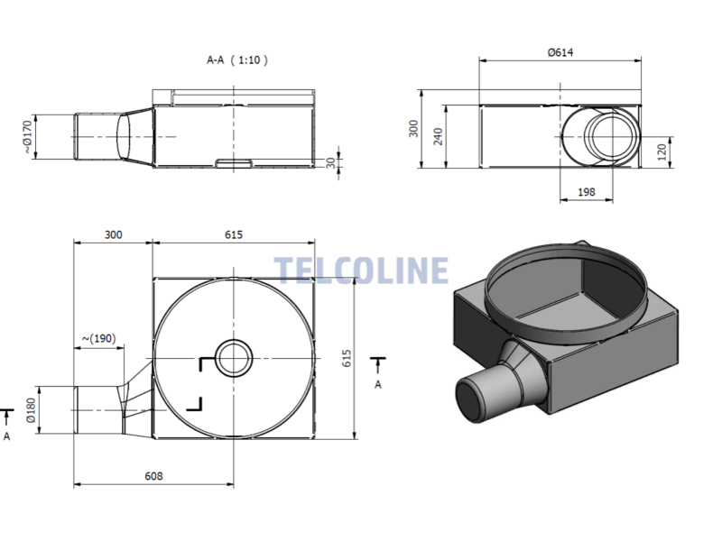 • Średnica otworu pod mufy: 170 mm